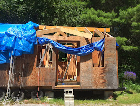 The rafters in the north dormer are slowly proliferating. Slowly because I keep taking breaks for rain. (How did today's forecast of 0% chance of rain turn into a torrential downpour and then showers throughout the day?!) It is so much work to peel back the tarps from the roof of the JayBee (and put them back afterwards) that I need to be assured of having hours to work rain-free or it's not worth it to begin.