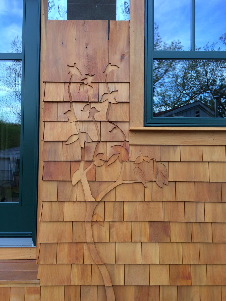 I'm up to the shingle courses that require that every single shingle get custom cut. Each cut has to be stained. Between that and multiple trips up and down the ladder for each shingle, it is slow going. At least this means I'm getting close to finishing up this side!