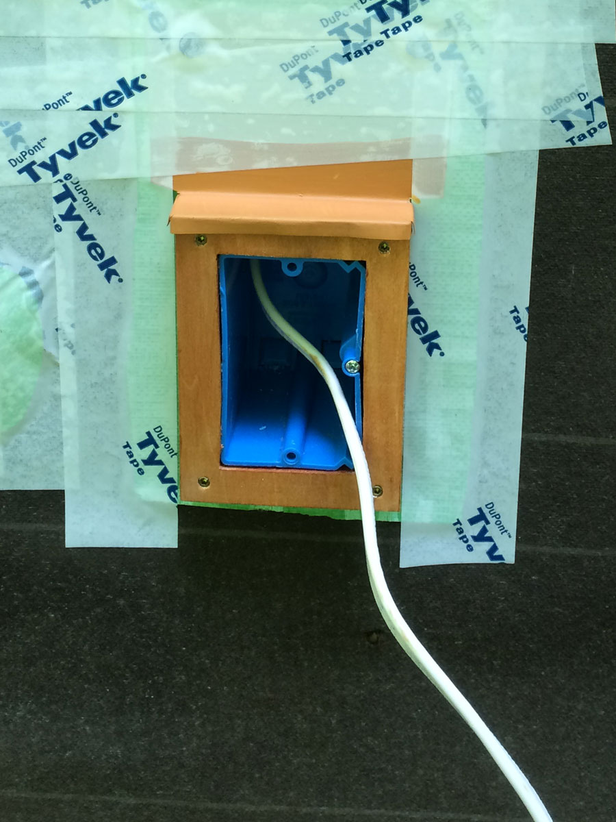 I have made decisions about all the openings that need to go through the north wall, and I have been trimming them out. I installed a light- and motion-sensing light on the north wall.